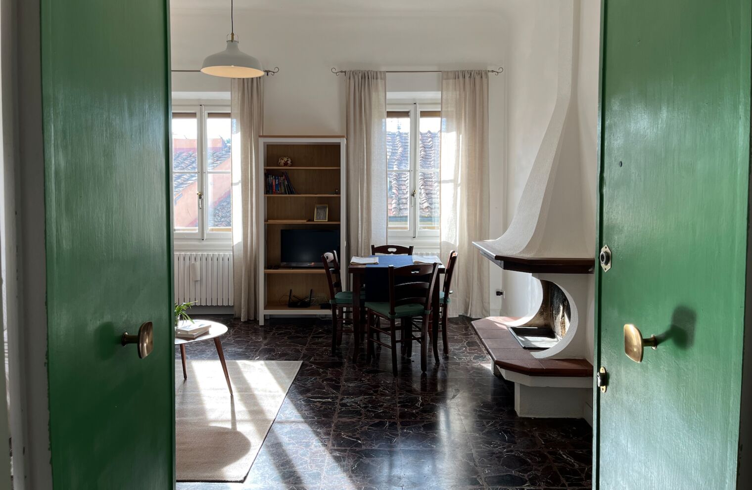 'Zu Hause in Oltrarno' ist unsere renovierte 80 qm Wohnung im beliebten Viertel Oltrarno. Es liegt nur 5-25 Gehminuten von den wichtigsten Sehenswürdigkeiten entfernt. Die Wohnung bietet Ihnen ein Schlafzimmer mit Blick auf die grünen Hinterhöfe und im Hintergrund auch Forte Belvedere und die toskanischen Hügel. Dazu ein kleines Schlafzimmer mit zwei Einzelbetten z.B. für Kinder und ein grosses Wohnzimmer mit Schlafsofa. Dazu eine vollausgestattete Küche und ein geräumiges Bad.